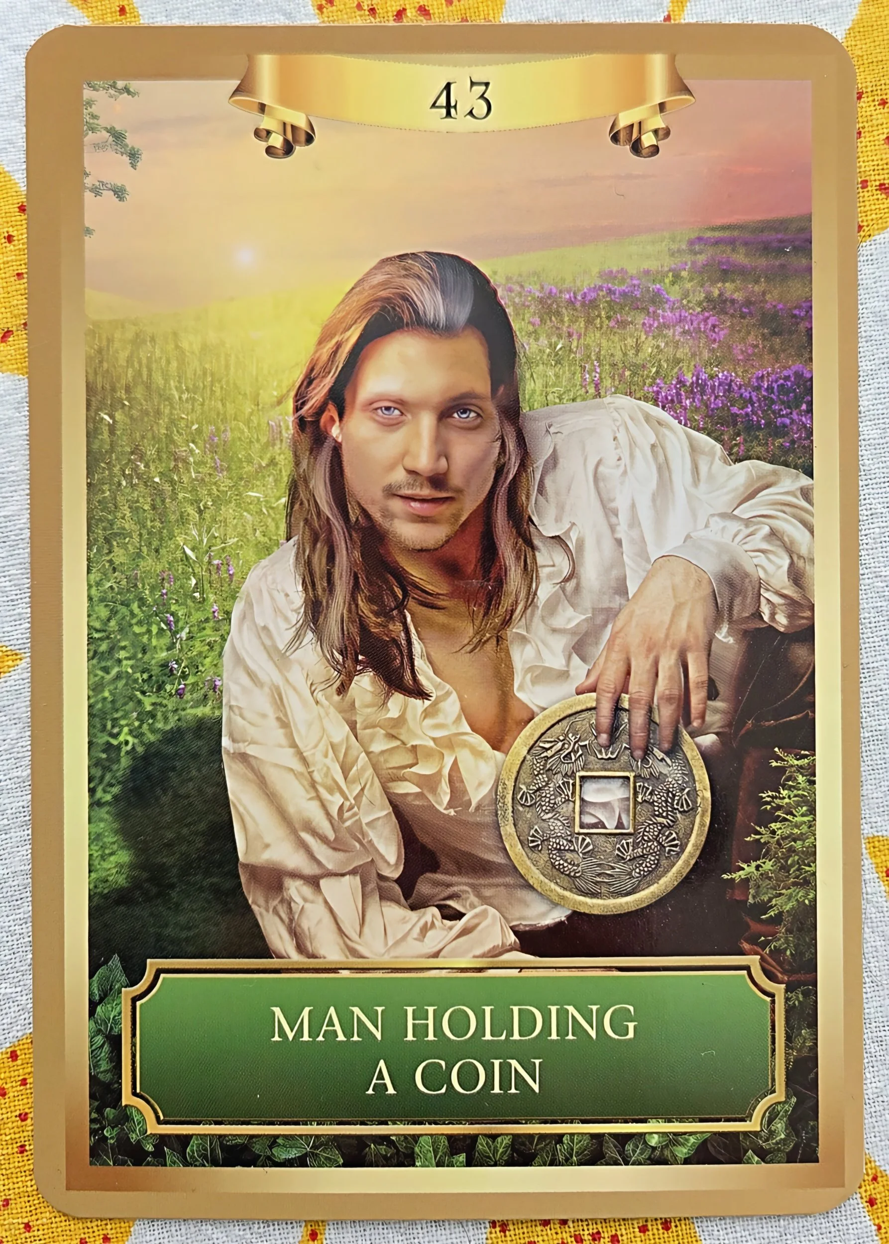 This card presents a man standing before an archway with his gaze fixed upon a shimmering crystal. This thoughtful individual embodies the arrival of a teacher or guide in your life.